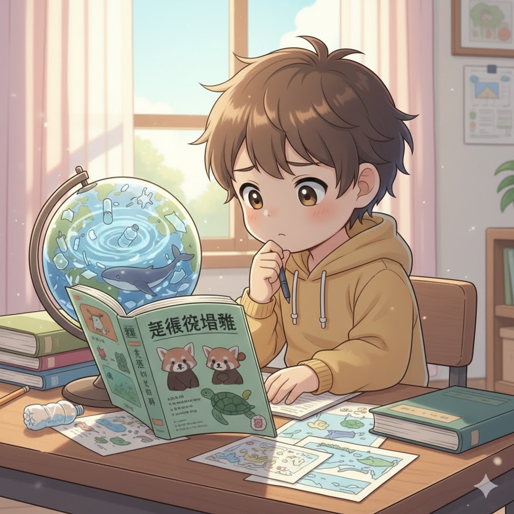 動物たちの命は、住んでいる環境や私たち人間の活動と深くつながっています。「絶滅危惧種」や「プラスチックごみ問題」など、少し難しいテーマに思えるかもしれませんが、本やインターネットで調べて自分の考えをまとめることは、社会問題を考える良い練習になります。