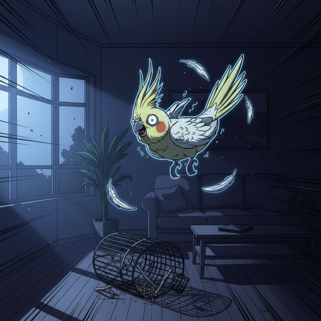 オカメインコと暮らす飼い主さんが必ず一度は経験する、恐怖のイベントがあります。それが「オカメパニック」です。真夜中、突然ケージの中で「バタバタバタ!」と激しく暴れまわり、時には怪我をしてしまうこともあるこの現象。