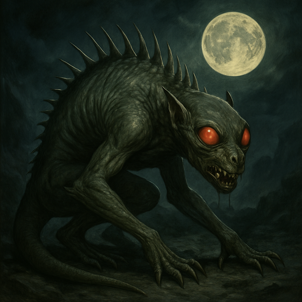 チュパカブラ(Chupacabra)という名は、スペイン語で「ヤギ(cabra)を吸う(chupa)者」を意味します。プエルトリコで初めて目撃され、その後メキシコやアメリカ南部へと噂が広がりました。目撃証言による特徴は非常に不気味なものでした。