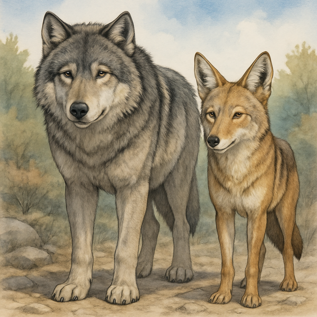 - 全体の印象: キツネっぽいならコヨーテ、イヌ(大型)っぽいならオオカミ。