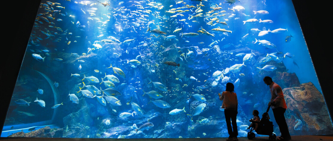 - 圧倒的な没入感:約40種2,000匹もの生き物たちが暮らす青い世界は、まるで海中に迷い込んだかのよう。