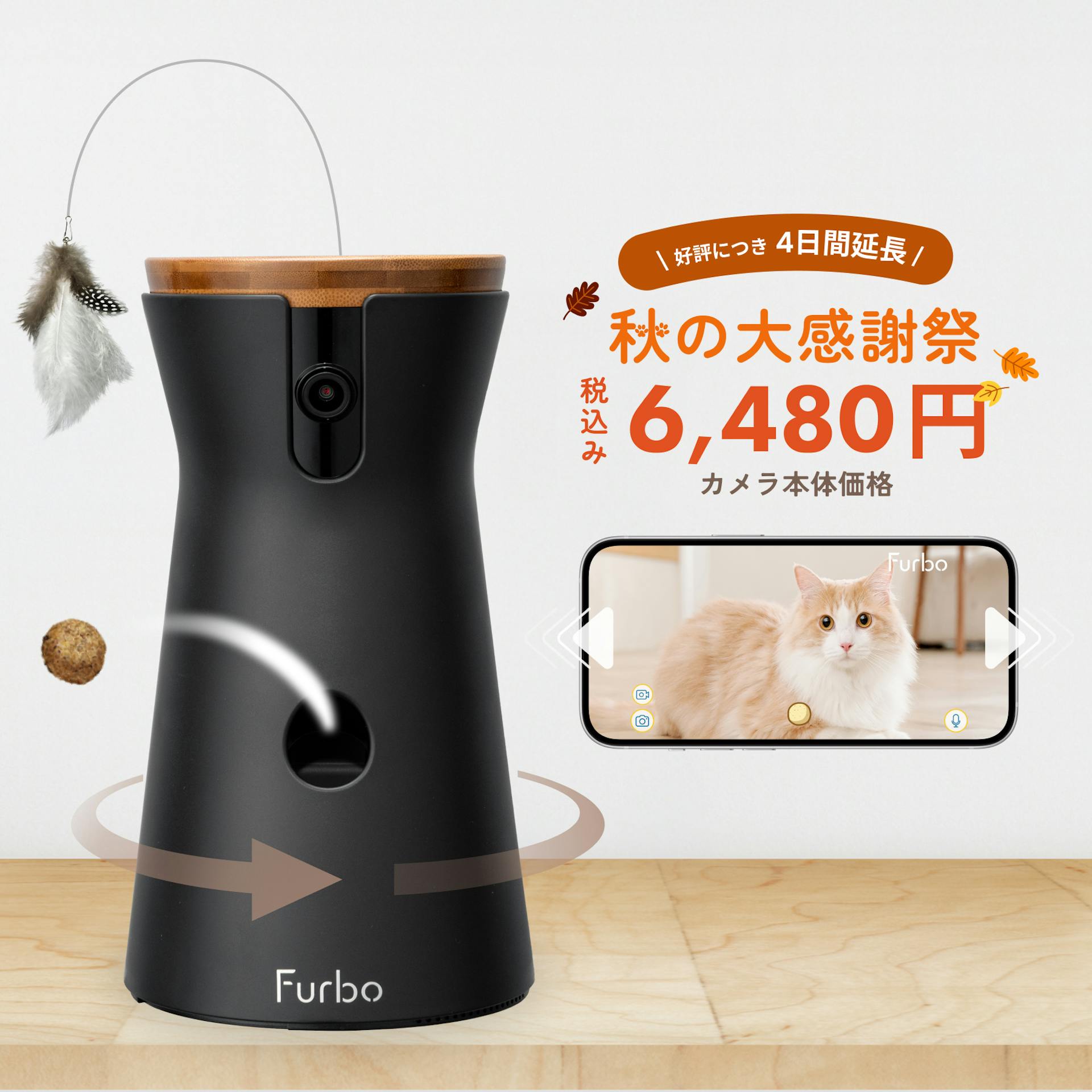 「ただ見守るだけじゃ物足りない!外出先からでも愛猫ともっとコミュニケーションを取りたい!」そんな飼い主さんの願いを叶えてくれるのが、この「Furbo ネコカメラ 360°ビュー」です。