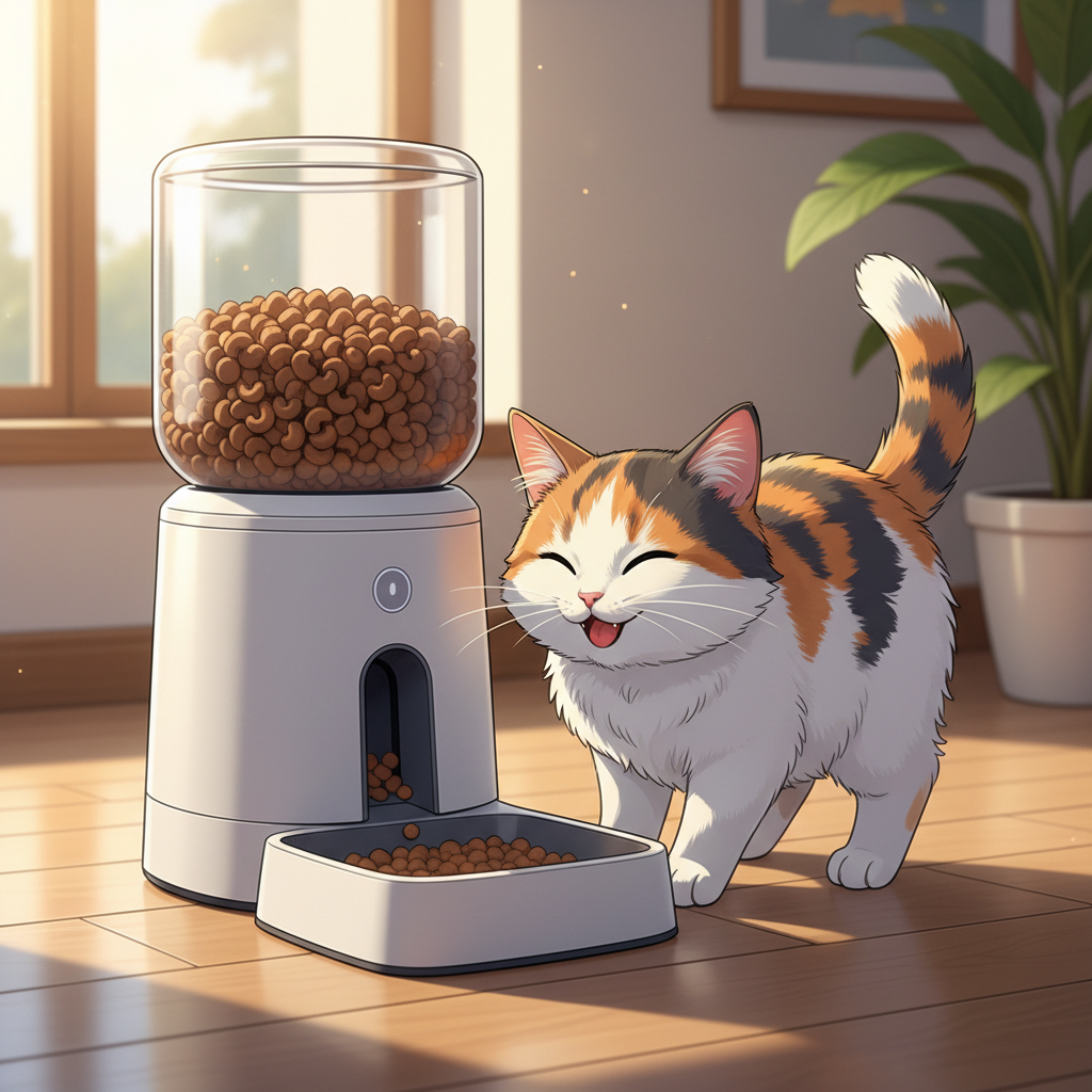 飼い主さんの時間を生み出す自動給餌器の決定版です。タイマー設定で毎日決まった時間にご飯が出るため、早朝4時の「ご飯くれ!」攻撃で起こされることがなくなり、飼い主さんの睡眠不足が一発で解消します。