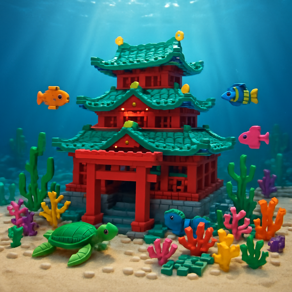 - レゴの登場人物:水槽内にはレゴブロックで作られた乙姫様や浦島太郎が隠れています。