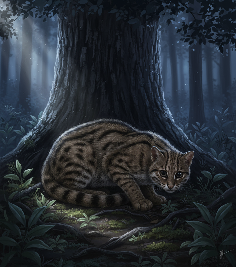 多くの人が寝静まった頃、ツシマヤマネコの本当の一日が始まります。彼らは典型的な「薄明薄暮性(はくめいはくぼせい)」の動物。
